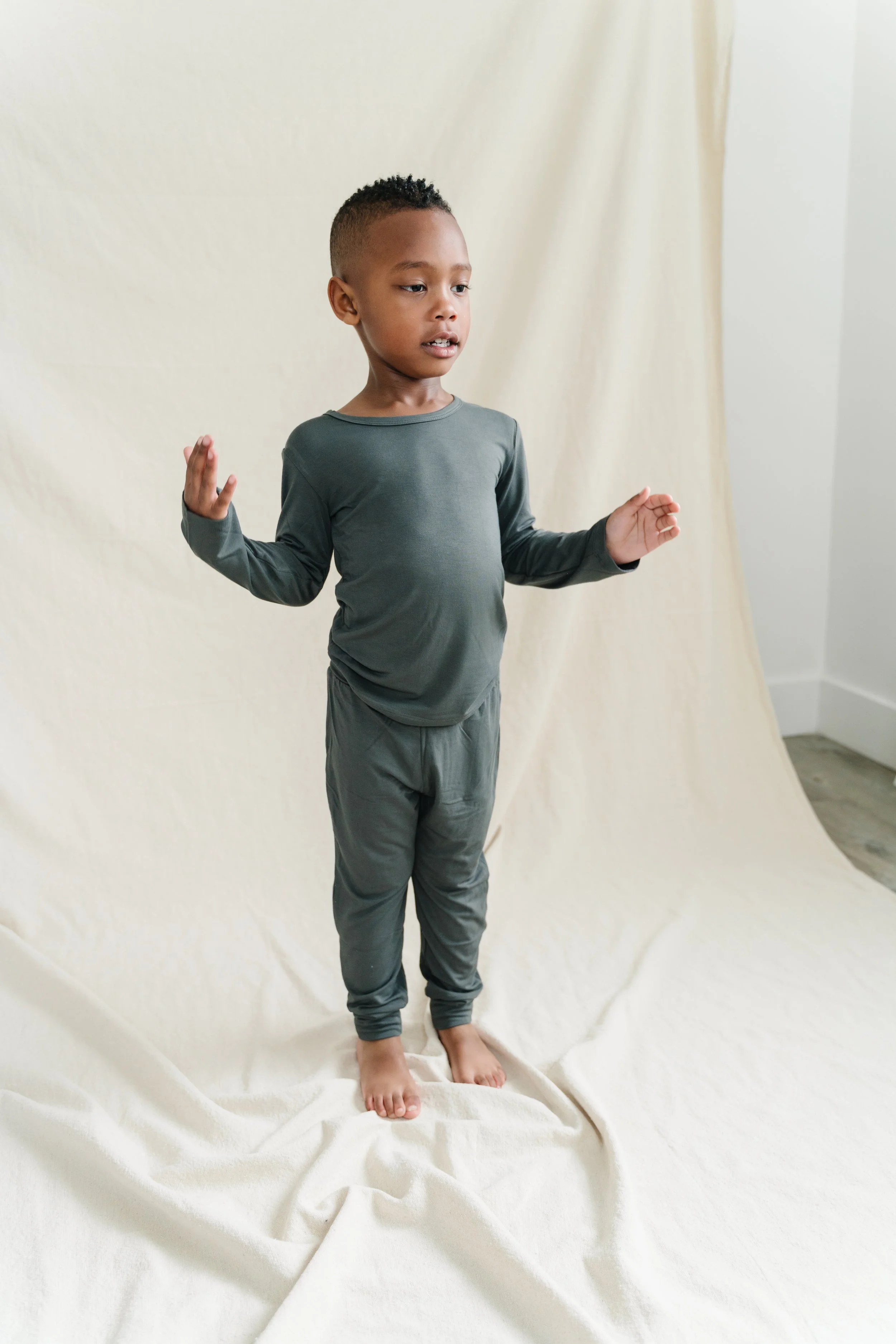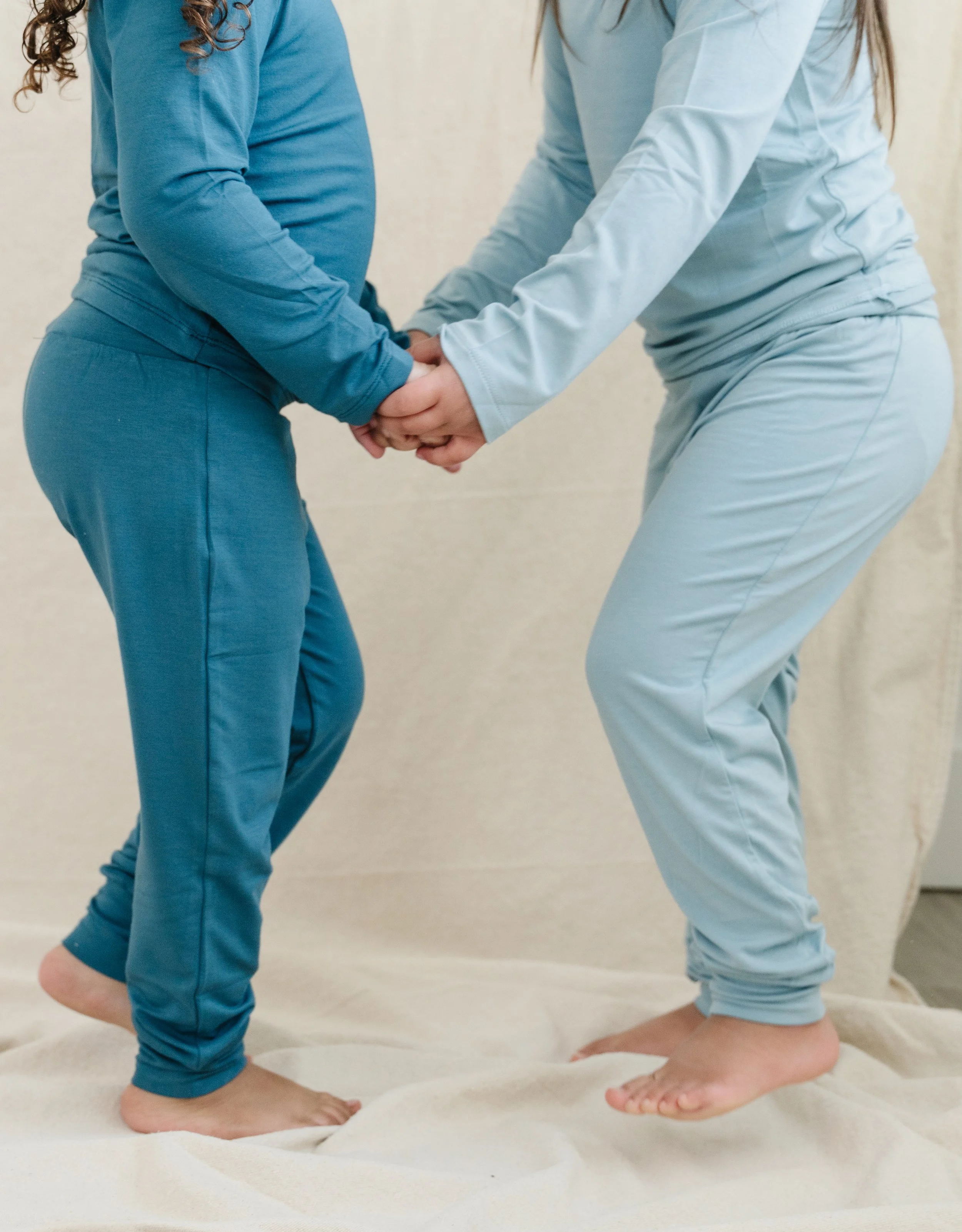 Die natürliche Atmungsaktivität und Temperaturregulierung sorgen dafür, dass Ihr Kind sich zu jeder Jahreszeit wohlfühlt. Der elegante Teal-Ton und die klare, moderne Passform machen dieses Top zu einem echten Allrounder – als Pyjama-Teil ebenso perfekt wie als stilvolles Basic für unterwegs.